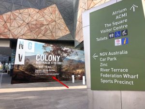As you can see below, catchy ad placement with a dark glass background holds your attention long enough to spot the domain: NGV.Melbourne.