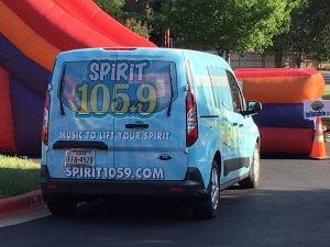 They had the most visible domain display via their van and tent being wrapped with Spirit1059.com on all sides.
