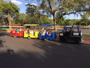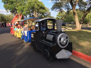 To top off this year’s VBS Family Night, Great Hills turned their parking lot into a mini-carnival filled with music, bounce houses, shaved ice, cotton candy, popcorn, and a good ole train ride.