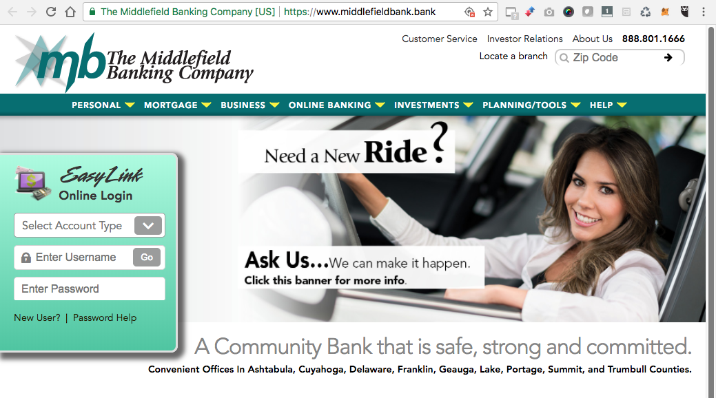 But that wasn’t the only surprise awaiting my attention. I was certainly caught off guard when I spotted a search result for Middlefield Banking Company that displayed the following URL: https://www.middlefieldbank.bank.