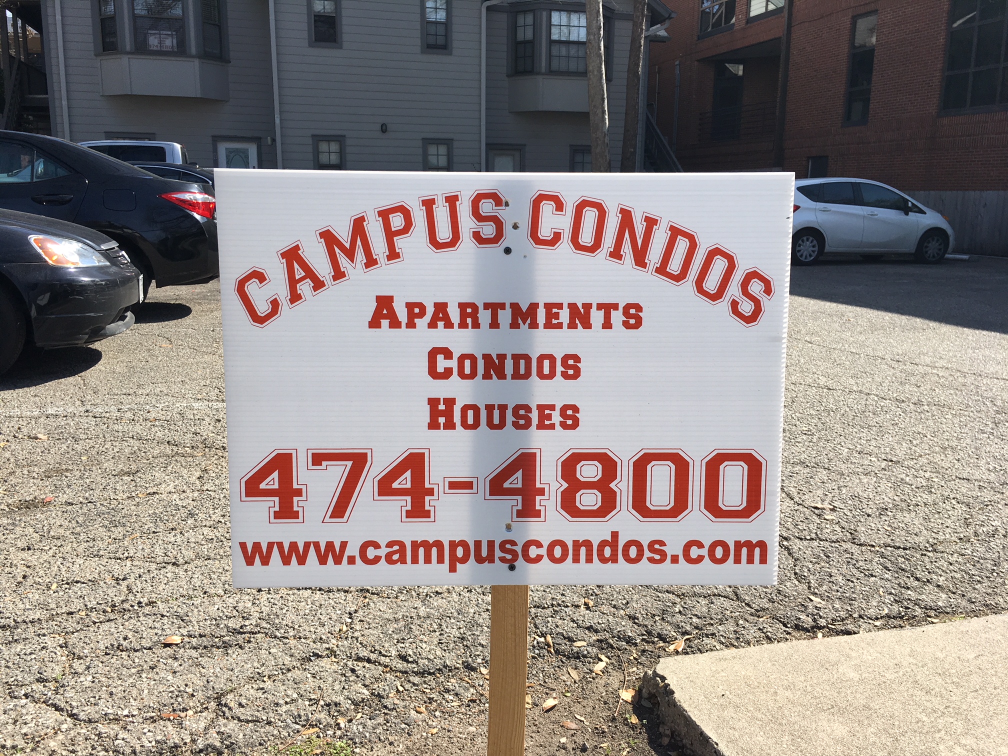 Upon leaving and having to trek about 5-6 blocks back to my car to continue my day, I was walked upon another domain advertised on a yard sign: CampusCondos.com.