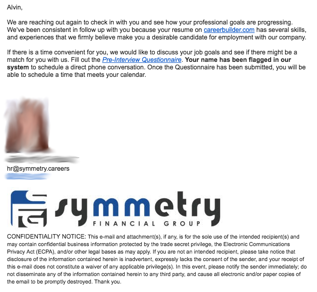 I often scan such emails and discard them without response. Nevertheless, this email caught my eye because of the email address it used in the email signature.