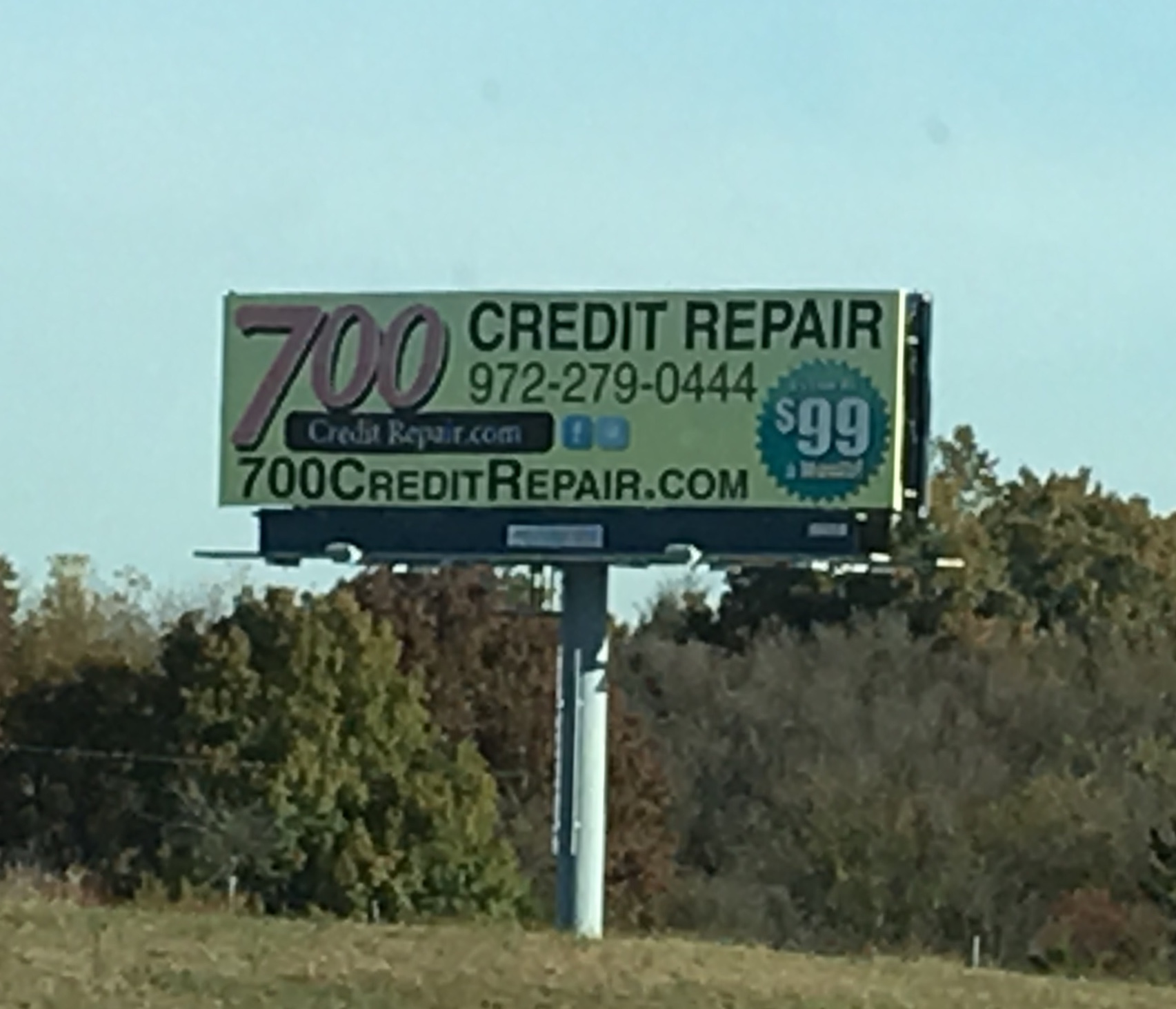 Just north of leaving Waco, my eyes spotted a domain used by a credit repair company based in Dallas, Texas: 700CreditRepair.com.