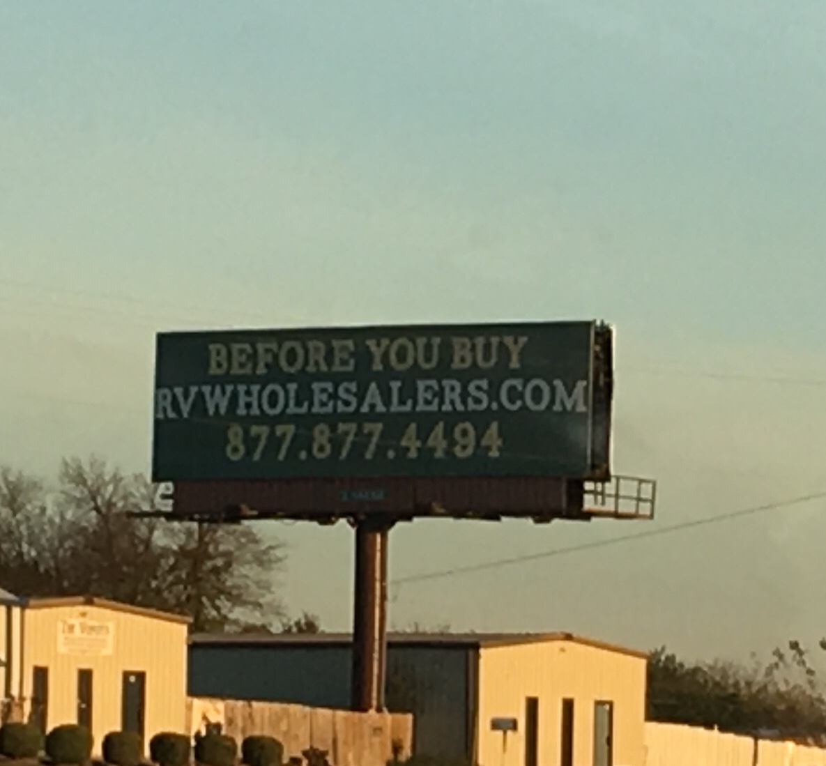 It wasn’t too long after passing the I-35 Statuary that my eyes I spotted a simple, yet intuitive billboard displaying a domain name that stated the exact service offering: RVWholesalers.com.