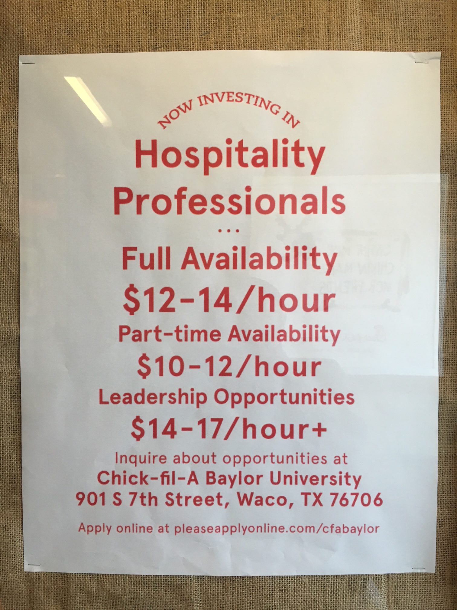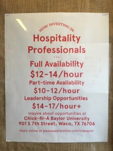 We finally arrived in Waco just in time for a breakfast and restroom break. As we ordered breakfast at a Chick-Fi-La, I noticed a hiring sign touting the following domain: PleaseApplyOnline.com.