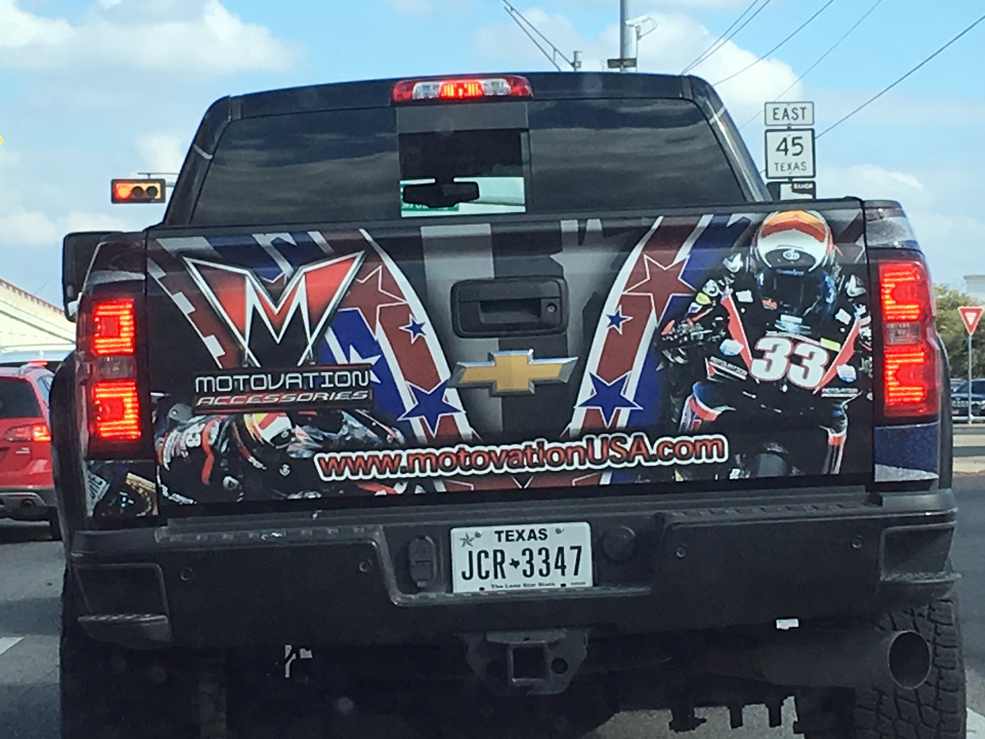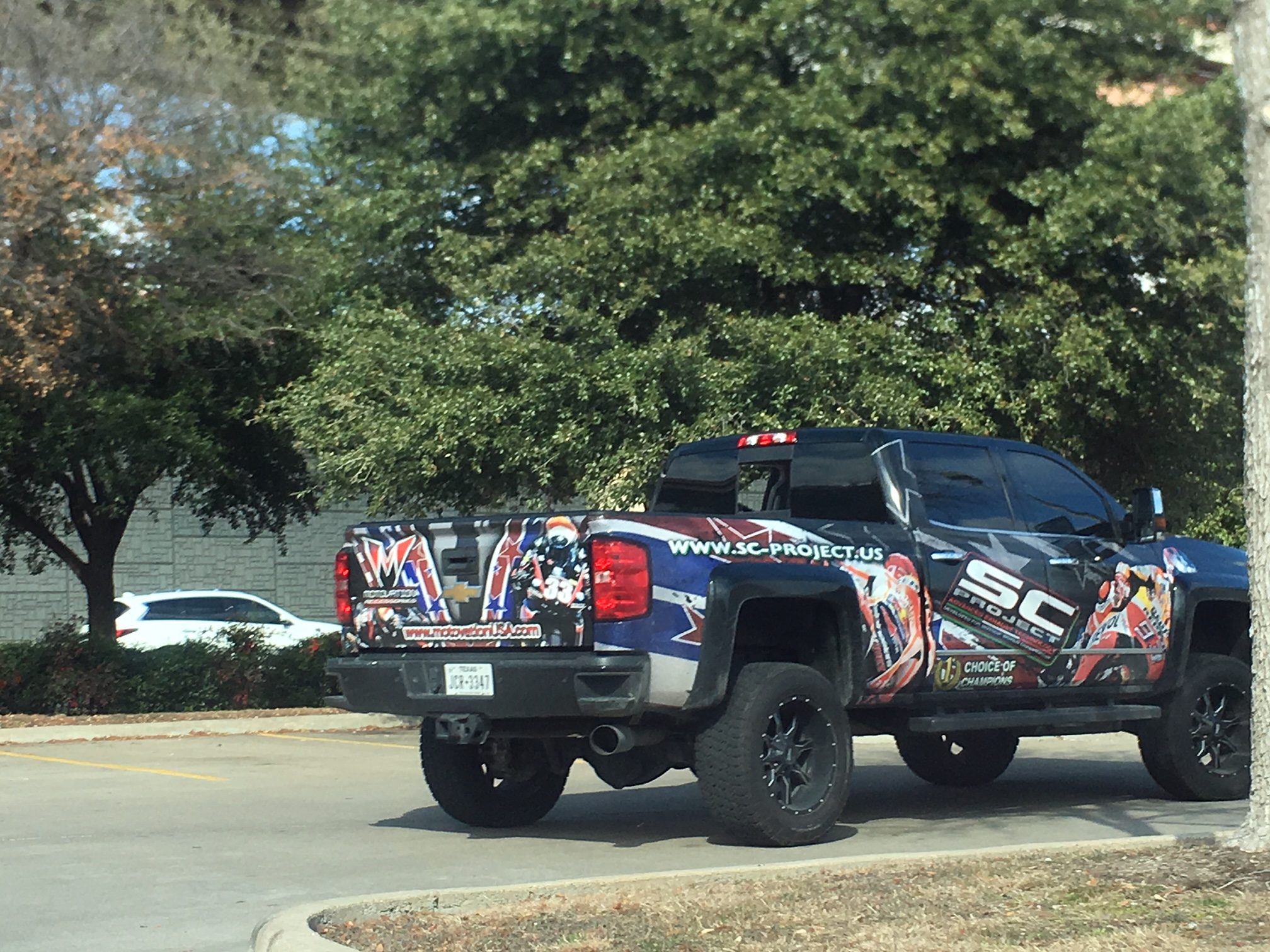 As I was leaving the Lowe’s parking lot, I spotted a lifted truck wrapped in ads leaving and noticed had the following .com and .us domains on it: MotovationUSA.com and SC-Project.us.