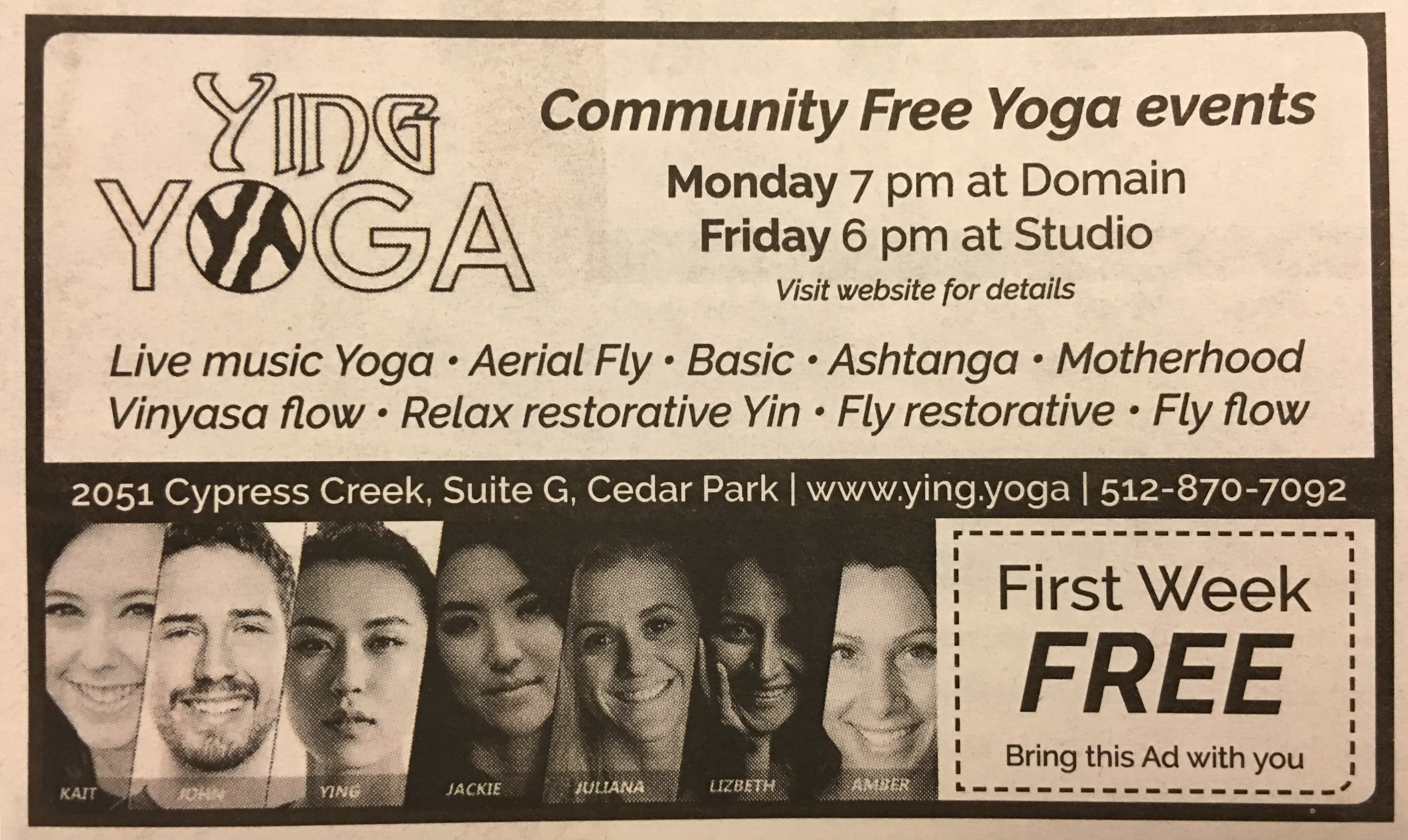 While reading the Northwest Austin Edition of Community Impact Newsletter (Volume 12, Issue 4), I stumbled upon an interesting advertisement for an Austin-based yoga company.